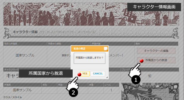 脱退するかどうかの確認ダイアログが開きますので、確認した上で、国家から脱退してください。